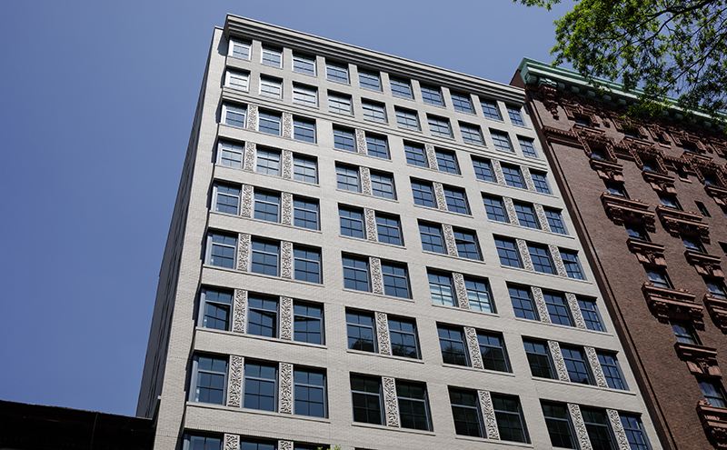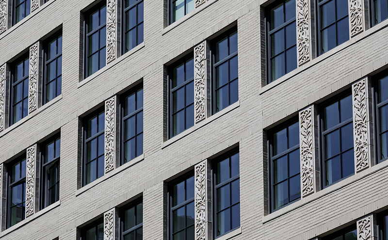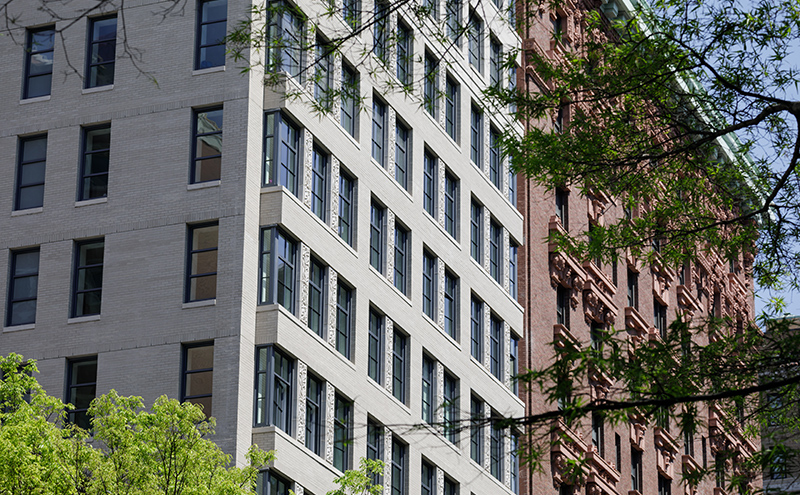 The 19-story building of luxury condominiums—one per floor—at 207 West 79th Street pays homage to the pre-war architecture typical of this historic Central Park West neighborhood. The building features decorative terracotta panels, punched openings, limestone masonry, and brick cladding. The operable six-panel windows are oversized and wrap the corners to bring maximum light into the interior of each apartment. Walsh Glass & Metal was responsible for the punched openings and storefront installation.